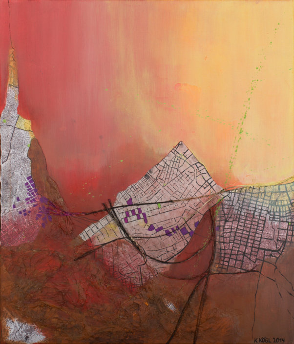 „"Karoline Kögl, una artista con fuego, dinámica y visión. Transmite emoción y liberación. Ponerse delante de sus grandes cuadros significa sumergirse en el espacio. Ella busca las dimensiones arrastradas en un juego de color, estructura y declaración. El conflicto entre la ciudad y el campo, la naturaleza interpretada por ella progresa con el mapa de la ciudad - collages a la habitación, a la libertad . Las pinturas comienzan con dos dimensiones que se desarrollan a una transición en el color, la profundidad, el espacio - de la tercera dimensión. Ella quiere y puede impartir la tensión". W.P.